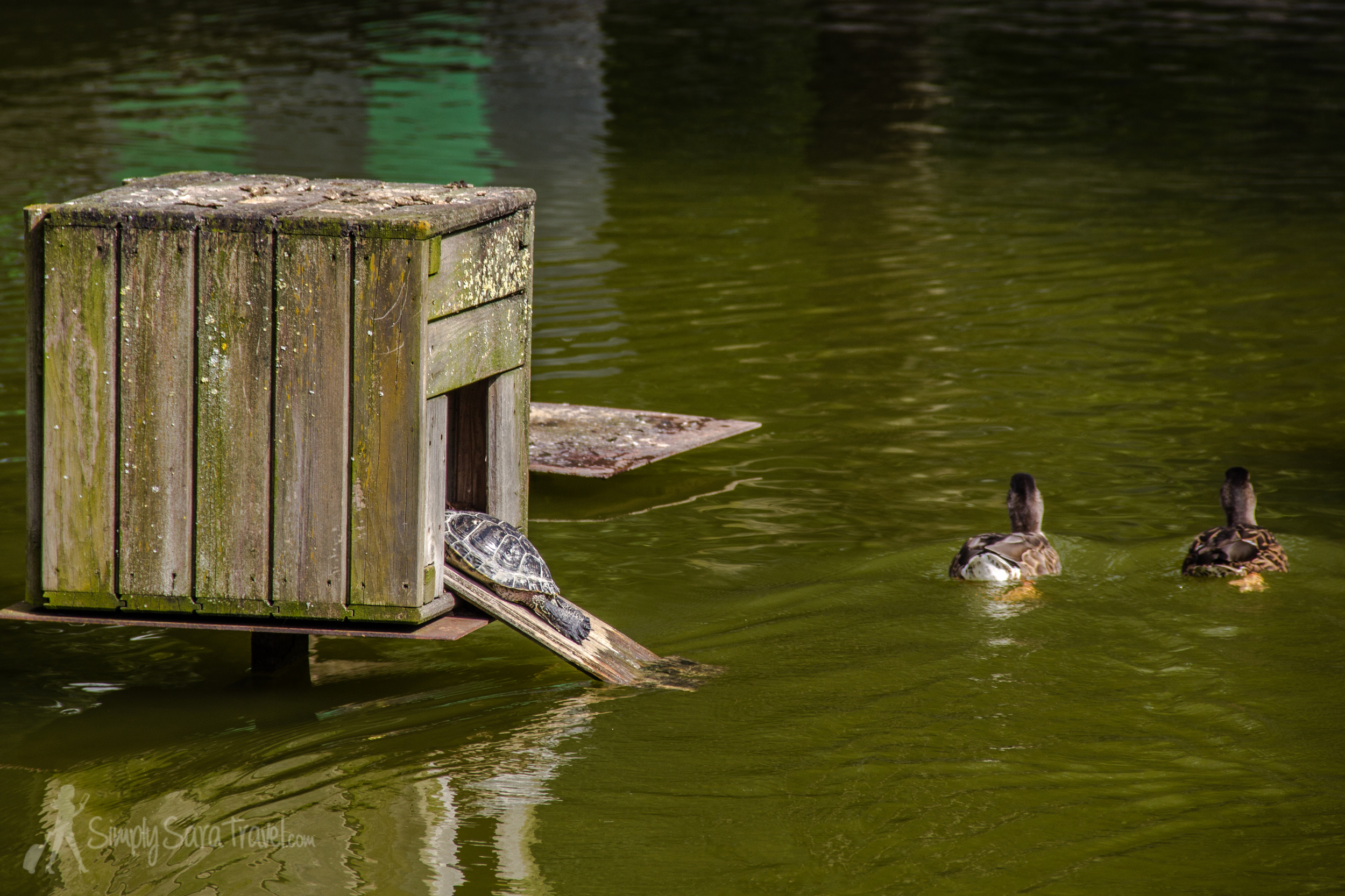 The lake is home to ducks, birds, and cute turtles among other creatures!